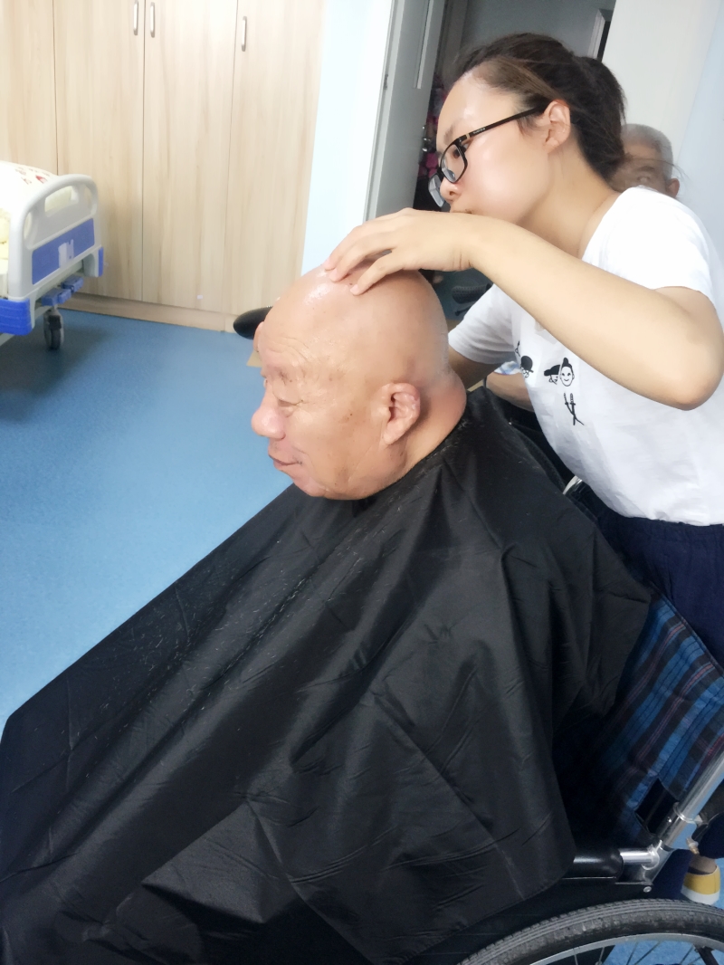 万福家人给爷爷们理发剃须,一流的技术,贴心的服务,获得了大家的一致认可!