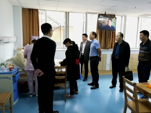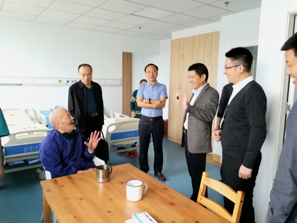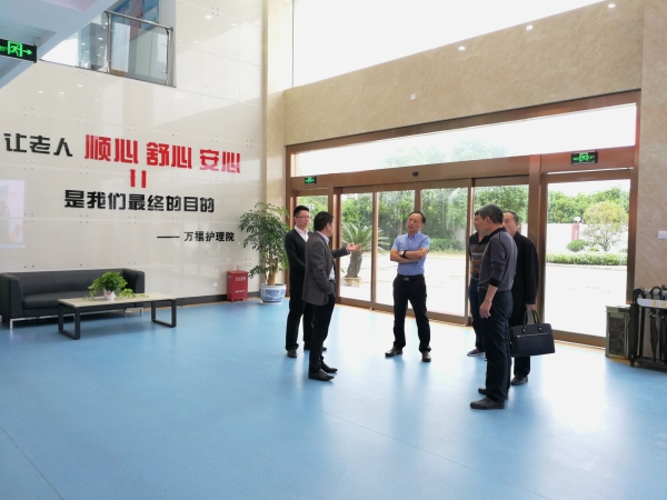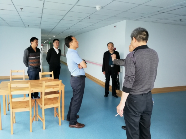 2017年10月11日下午,南通市民政局陈太山局长等一行在港闸区民政局蒋长泉副局长的陪同下莅临万福护理院视察、指导工作。在我院总经理朱华同志的带领下,陈局长等一行先后参观了我院医生办公区、康复治疗大厅、医学检验科、影像科等科室,以及老人病房、食堂、景观花园等多个区域,对我院的环境、设施、设备等多个方面给予了充分肯定。