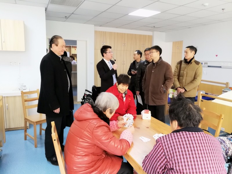 下午2点30分,景校长一行抵达南通万福护理院,在我院总经理朱华先生的带领下参观了我院的康复训练室、医生办公室、医学检验科、老人入住房间、食堂、景观花园等多个区域,景校长一行和老人亲切交谈,询问其生活状况,对老人们的精神面貌表示称赞,同时也对我院的工作尤其是护理工作表示肯定!