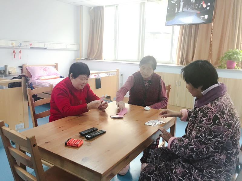 (老人们在暖洋洋的房间里打牌娱乐)